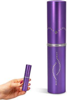This is the most discrete stun gun on the market. Enclosed in the body of cosmetic lipstick lies an even more disguised stun gun. This exclusive “fire it up” makes the sound of a rattling stun that is capable of immobilizing an attacker.